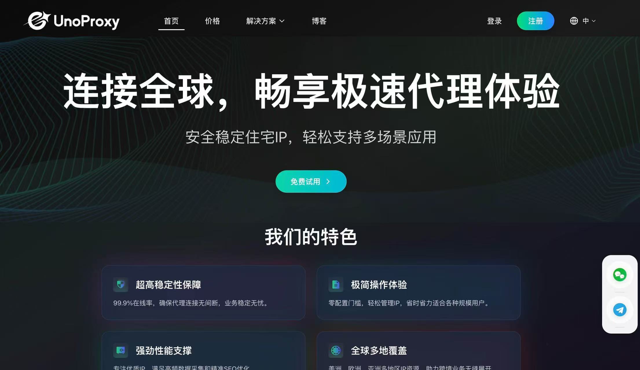 Unoproxy是一家專注於提供高質量住宅代理(Residential Proxy)服務的技術服務商,致力於為全球用戶打造更穩定、更隱私、更高效的網路訪問解決方案。我們擁有數千萬級真實住宅IP資源,覆蓋全球190+國家和地區,適用於多種網路環境下的身份隱藏、IP轉換、數據抓取、廣告驗證、帳號防關聯等業務需求。